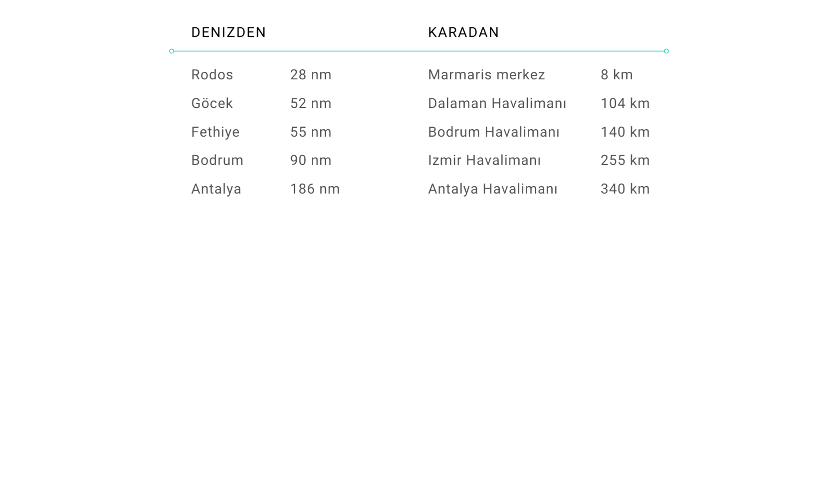 Marmaris Yacht Marina Muğla'nın bir ilçesi olan Marmaris'ten karayolu ile 8 km, denizden ise 2 mil uzaklıktadır.