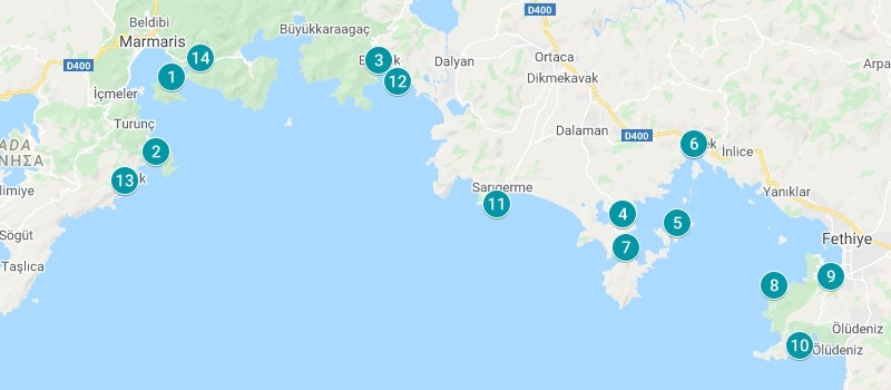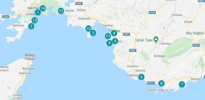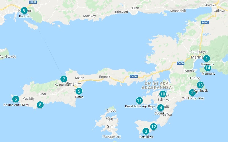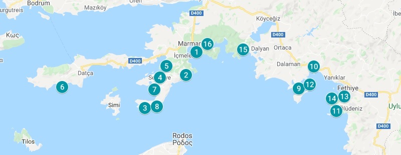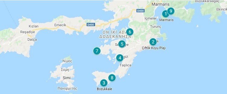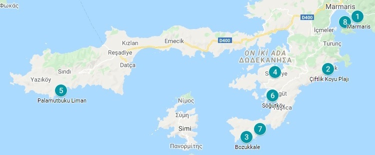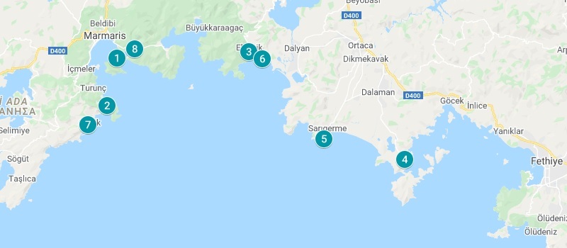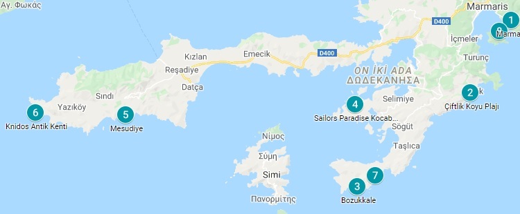Приезд в Мармарис (1), далее в KUMLUBÜK (2) (6,5 NM)